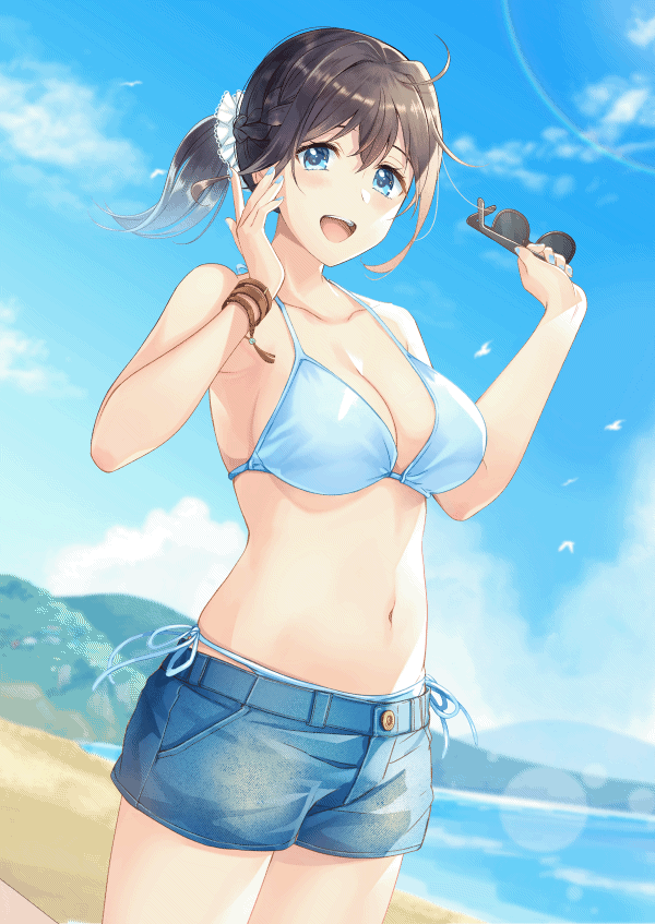 This is an animation of a naughty girl who takes your belongings and invites you to the sea.