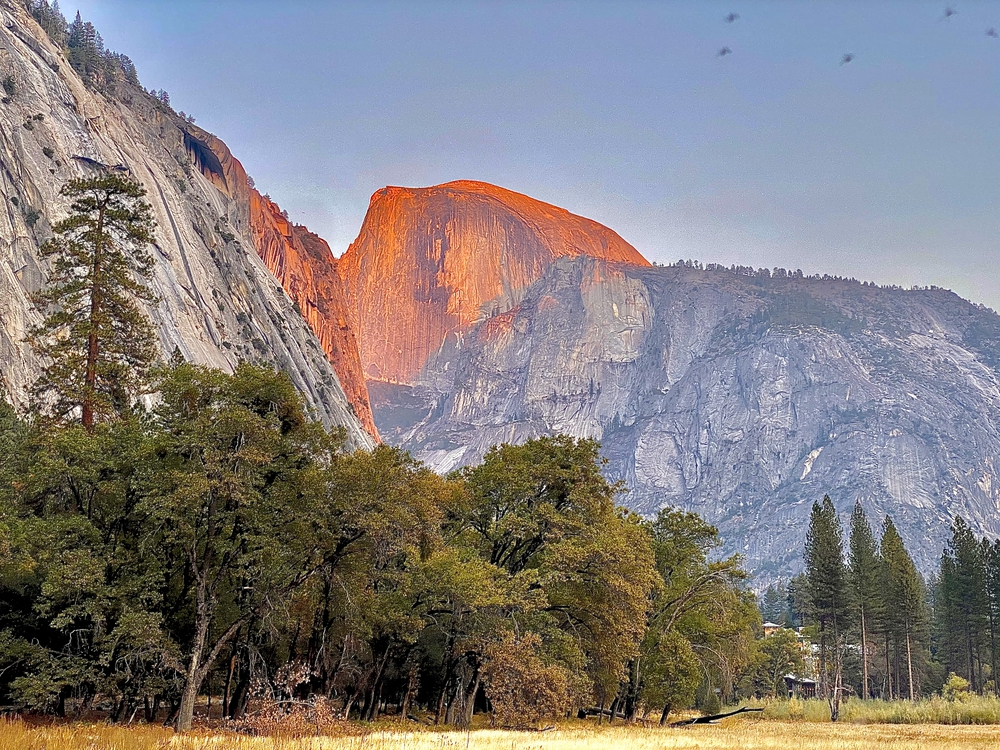 The autumn sun sets over Half Dome. Yosemite National Park, California.