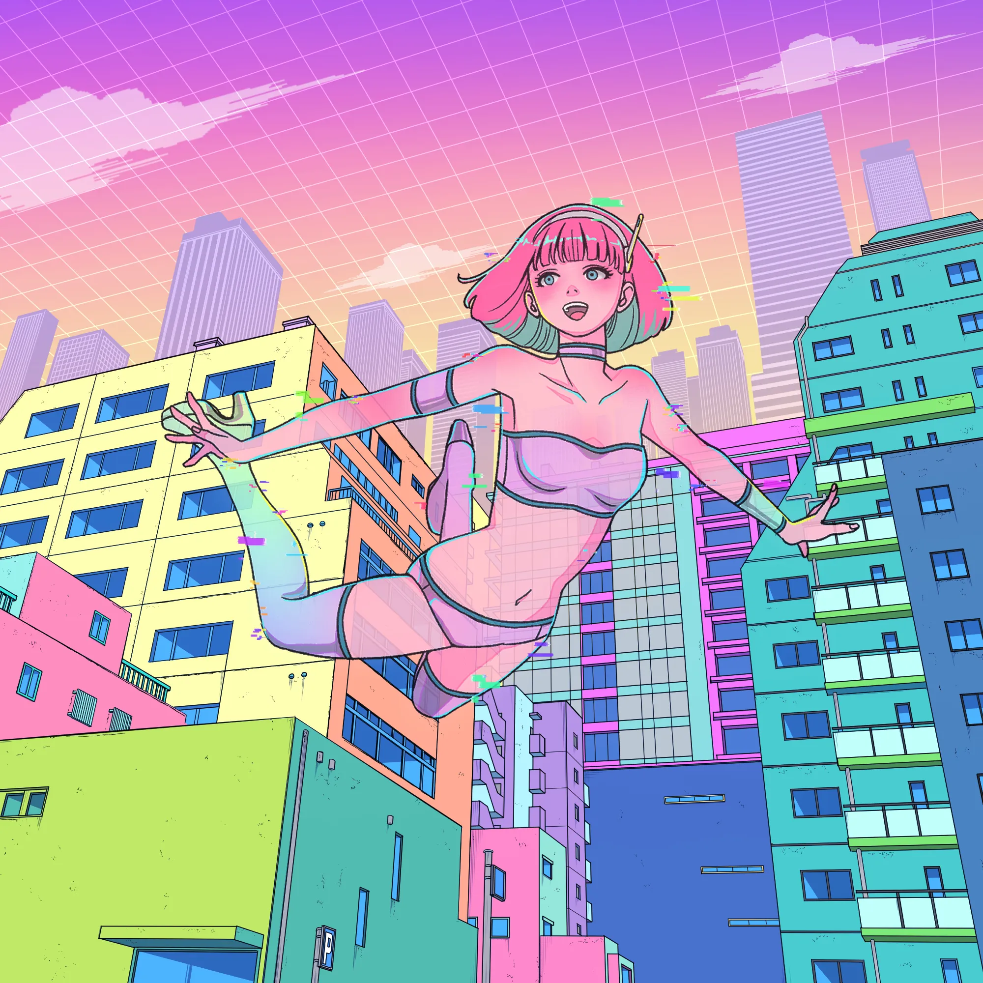 平成時代のノスタルジアとネオンに彩られたネオ東京へ 彼女と一緒にダイブしよう。 Dive into Heisei nostalgia and neon-lit Neo Tokyo— Take the plunge with her.