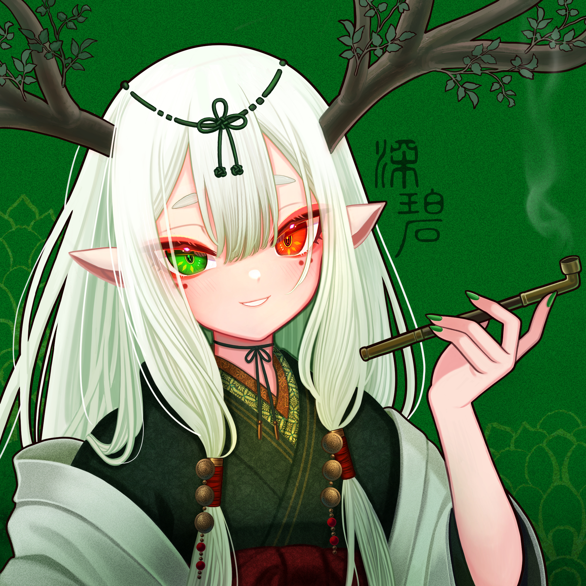 Haxian Lab "ante" [くろつき×Ginger_Ninja_Cat] 【illustrated by くろつき-KUROtsuki-】 Character:弥勒(MIROKU) Theme color:緑(Green) 【深碧】 #005E15 宝石の緑碧玉のような力強く深い緑色。 色名の「碧」は「碧玉」を意味し、古代より曲玉・首飾りなどの装飾品として用いられてきた。 This is Japanese traditional colors called "Shinpeki". Deep and strong green color like gemstone green jasper. The color name "Heki 碧" means "jasper 碧玉". Since ancient times, it has been used as an ornament such as a bauble, necklace, and so on. 【くろつき-KUROtsuki-】 「白髪の女の子+和の背景」をテーマにした作品を描いています。 幻想的でノスタルジーな世界を貴方に。 I paint artworks on the theme of "Wwhite hair girl + Japanese landscape”. A fantastic and nostalgic world for you. ◆Twitter https://twitter.com/KUROtsuki_962 ◆Opensea (和の色PFP) https://opensea.io/collection/kamisama-girl (和の色PFP~色違い~) https://opensea.io/collection/kamisama-girl-alternative ◆Foundation (幻想的な背景作品) https://foundation.app/@kurotsuki_962
