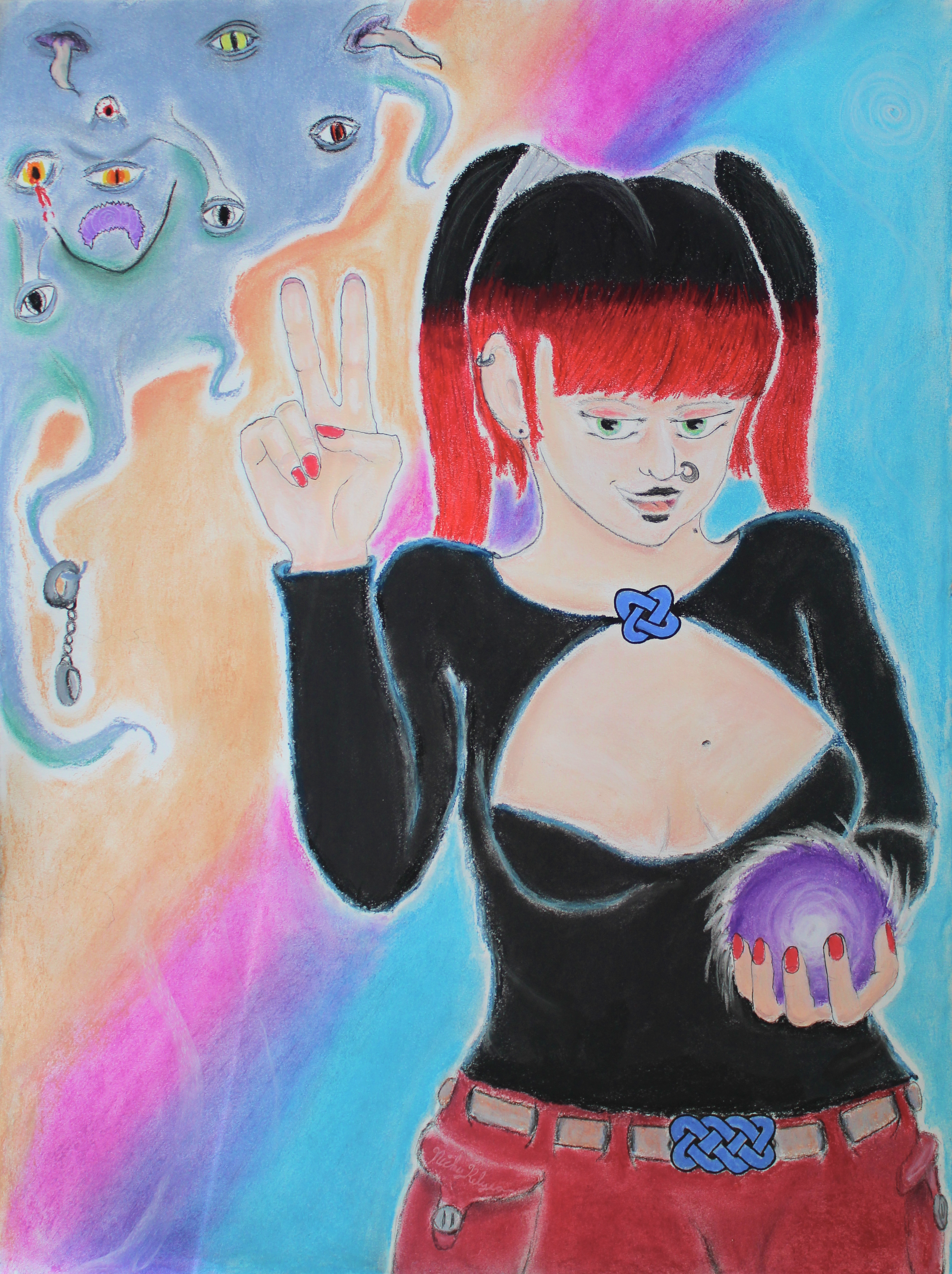 "Also known as Awakening Utility as its release title. Break from the Hypnotic exchange. Become your Utility. It's your own path. Choose it. Don't give in to what they say or think that the rules that apply to their idea of creativity are your own. You don't need to sell your soul to make your art. Just do it. Whatever colors you choose to use to express yourself. Whatever path you choose, do not let others choose for you. Do not listen to the monsters that want you to make what they want. Whatever shape you are. Wield your medium and soul by facing the world and tell all those fakers to take a hike. Pastel 61cm by 45cm Ink and Charcoal"