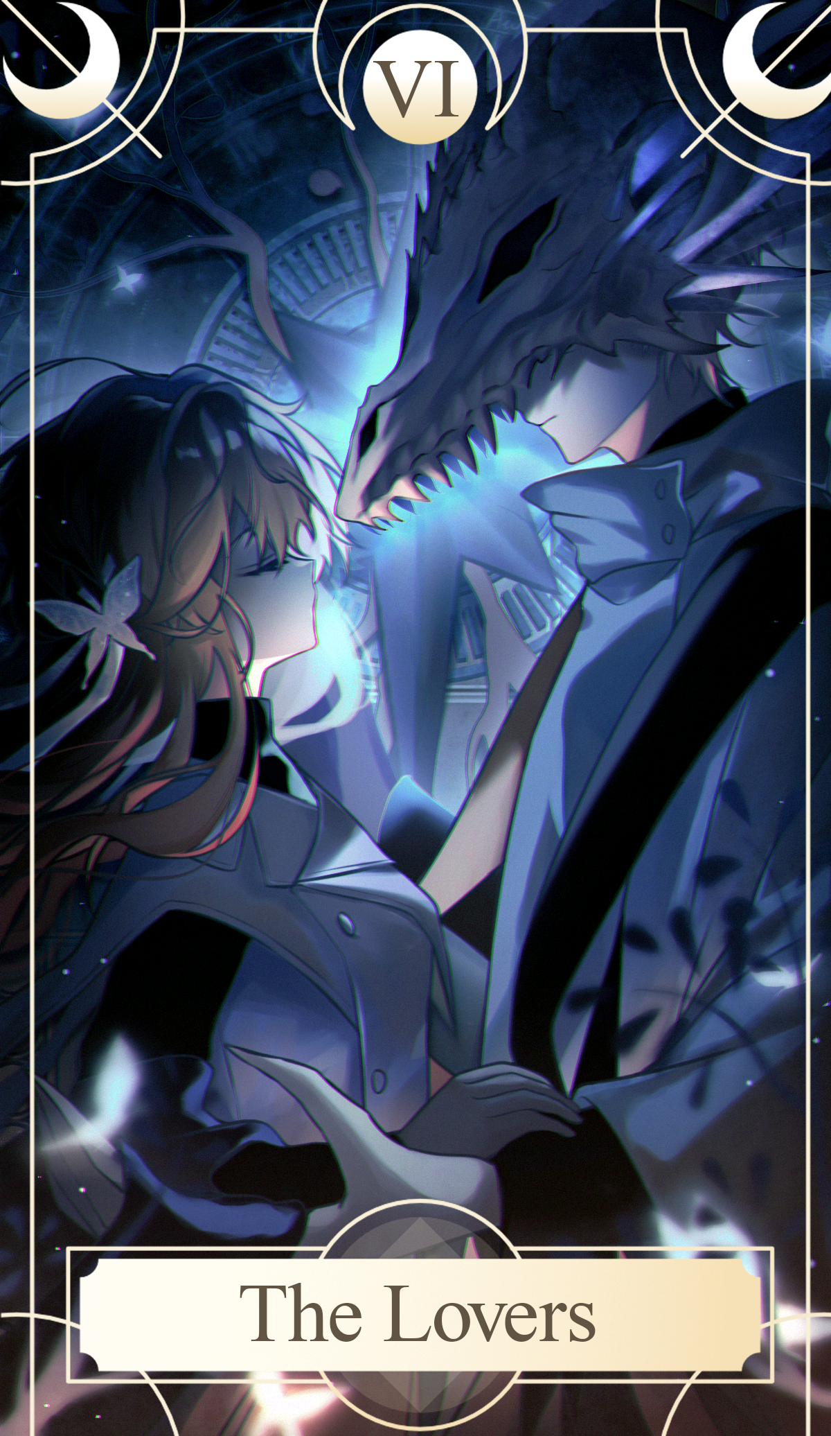 The Lovers by [Usapuppy](https://twitter.com/usapu_ppy) Name: Abelia | Chronos Race: Nephalem | Demon Personality: Calm | Dishonest Flaws: Emotionless, Ignorant | Impulsive, skeptical **Depiction**: A man and woman stand in possibly the Garden of Eden, with "The Tree of Life" behind the man and "The Tree of Knowledge" behind the woman. **Meaning**: The Lovers represent relationships and choices. Its appearance in a spread indicates some decision about an existing relationship, a temptation of the heart, or a choice of potential partners. Often an aspect of the querent's life will have to be sacrificed; a bachelor(ette)'s lifestyle may be sacrificed and a relationship gained (vice versa), or one potential partner may be chosen while another is turned down. Whatever the choice, it should not be made lightly, as the ramifications will be lasting. **Upright card (keywords)**: Choices, Commitment, Falling in love, Partnerships **Reversed card (keywords)**: Disharmony, Imbalance, Self-love