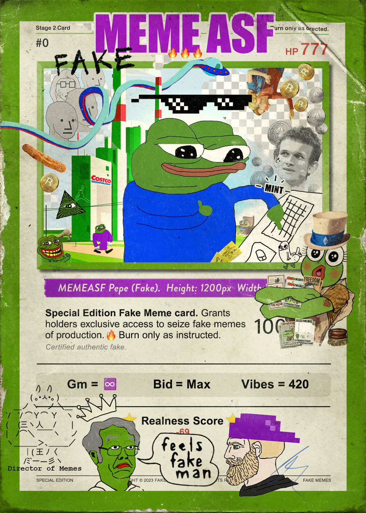 MEMEASF is your allowlist Mint Pass and burn token for approved Fake Memes for Series 1