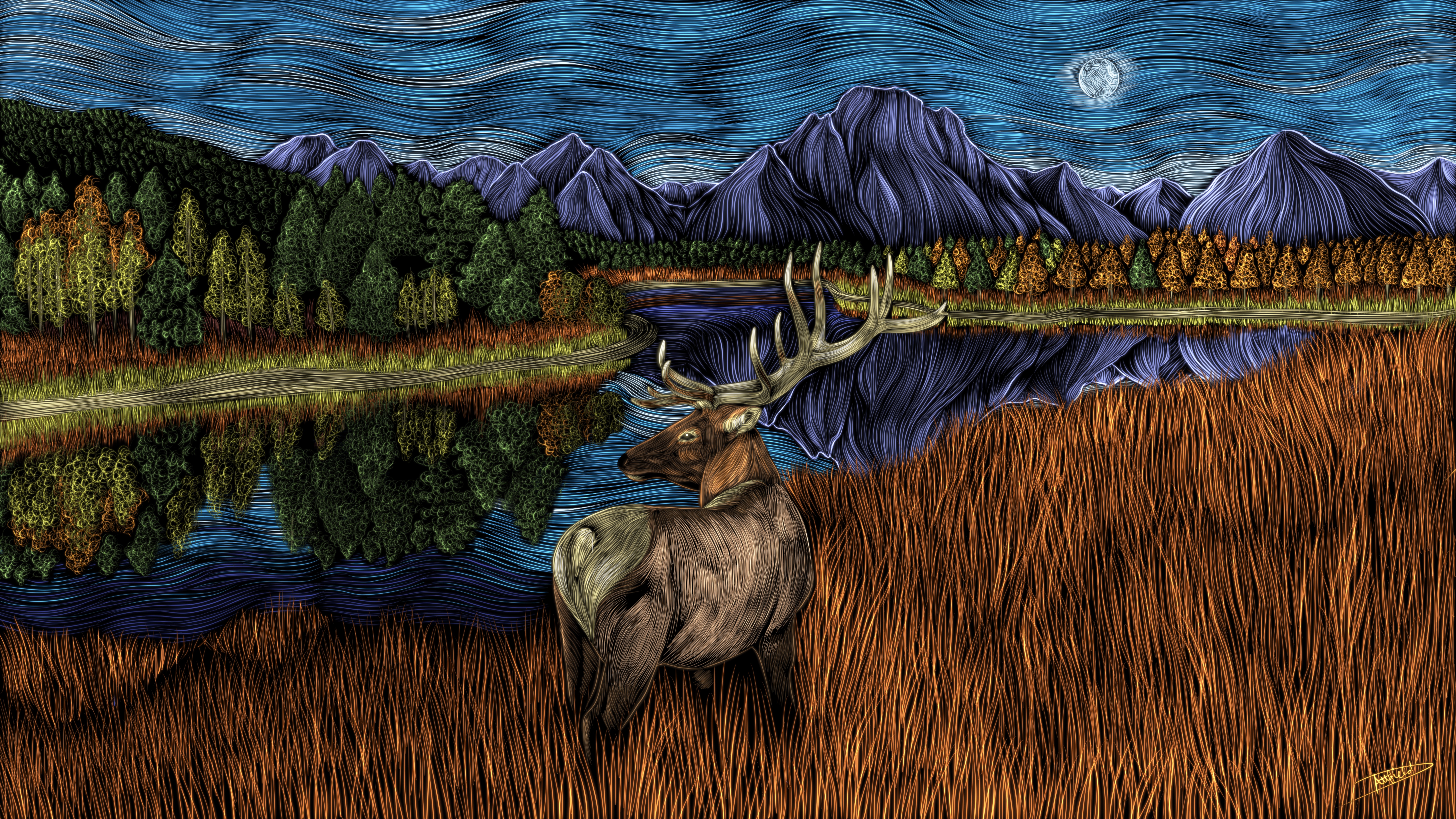 The mountains rise ahead ---- The river flows by my side. ---- There is just the quiet of nature ---- And all the beauty she provides. ---- A commission for @creator_collection, representing The Tetons in Wyoming
