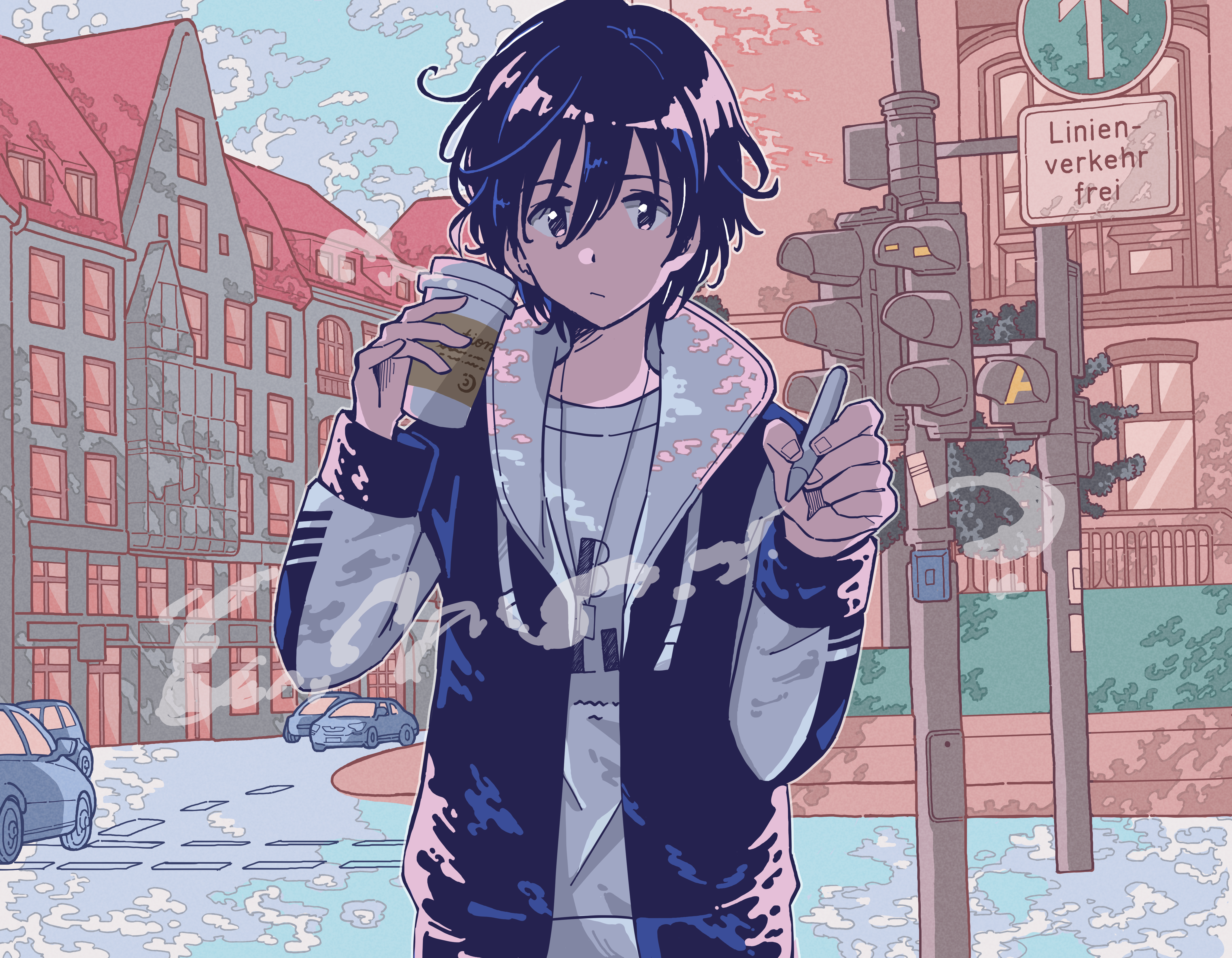 I have loved drawing pictures since I was a child, and I still draw pictures in the air. My mother kicked me out of the house and told me to go get some fresh air because I stayed in my room and painted all the time. My classmates also look at me strangely. But I don't mind. I will keep painting until I die. Because painting is everything to me! 僕は子どもの頃から絵を描くのが好きで、今も空中に絵を描いています。 部屋にこもってずっと絵を描いているので、母から 「外の空気を吸ってきなさい」と家を追い出されました。 同級生からも変な目で見られています。 でも、気にしない。僕は死ぬまで絵を描き続けるでしょう。 だって、絵を描くことが僕にとって全てだから! 385.64mm×300mm (350dpi)