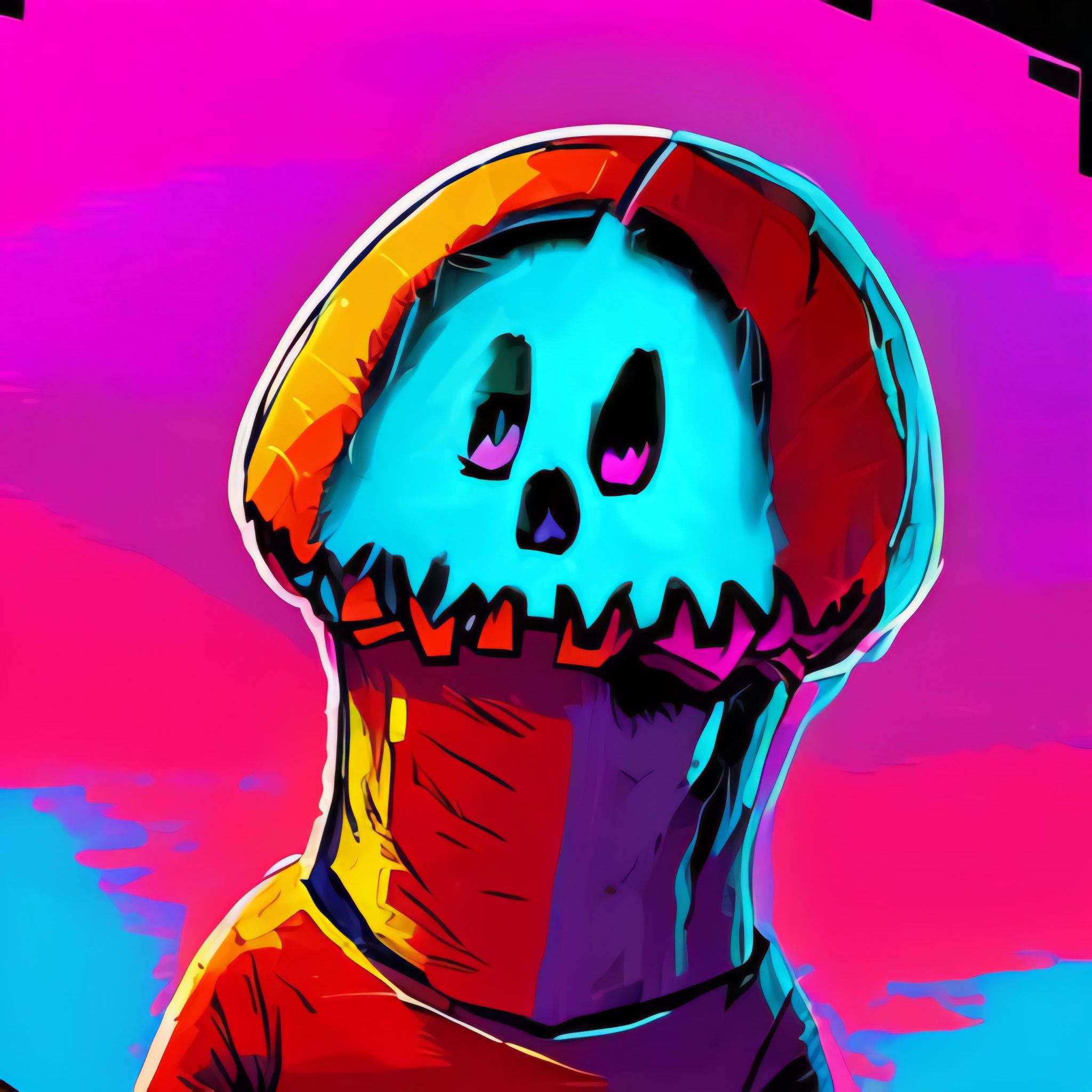 eyeballs look like flames teeth look like legos some semblance of veinage in neck